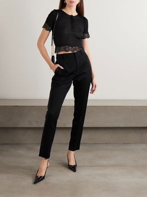 Scalloped Lace-trimmed Ribbed Jersey Henley Top