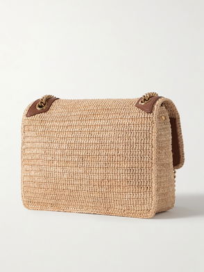 Niki Medium Leather-trimmed Raffia Shoulder Bag