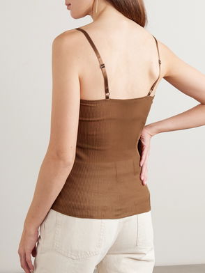 Lace-Trimmed Ribbed-Knit Silk Tank Top