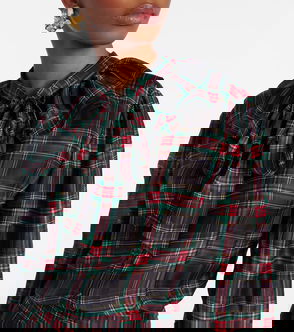 Checked Pleated Silk Charmeuse Midi Dress