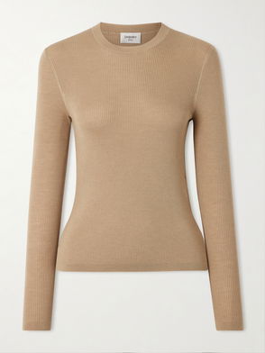 Lace-Trimmed Ribbed-Knit Silk Tank Top