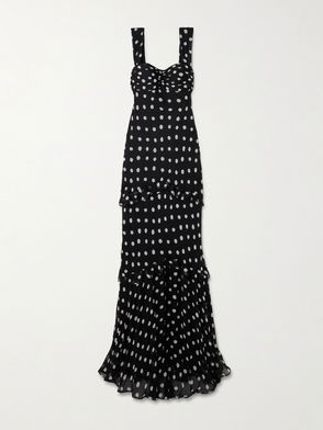 Selma Ruched Ruffled Polka-Dot Crepe De Chine Maxi Dress