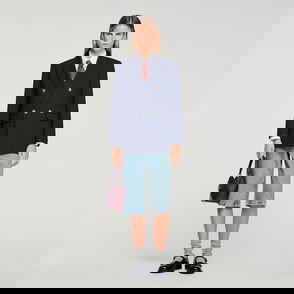 Houndstooth Denim-paneled Stretch-knit Shirt Jacket