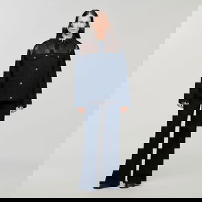 Houndstooth Denim-paneled Stretch-knit Shirt Jacket
