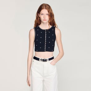 Cropped Striped Crocheted Cotton-Blend Cardigan