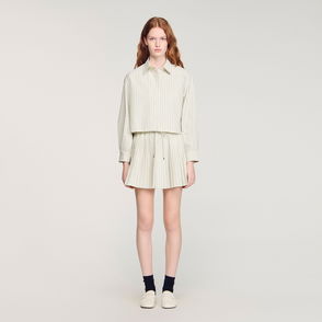 Lace-trimmed Cutout Striped Cotton-poplin Shirt