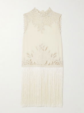 Adelina Tie-Side Fringed Lace-Paneled Woven Top