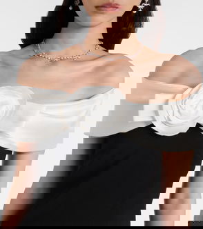 Floral-appliqué Off-shoulder Crêpe Top