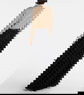Lace-trimmed Polka-dot Chiffon Maxi Skirt