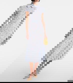 Grosgrain-Trimmed Embroidered Satin And Guipure Lace Midi Dress