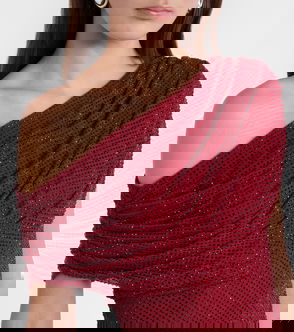 Draped Embellished Mesh Top