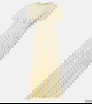 Belted Crystal-Embellished Guipure Lace Midi Dress