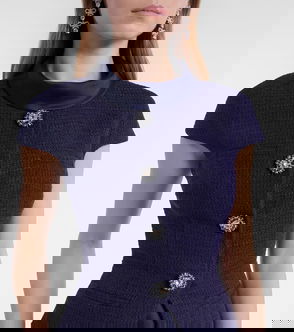 Twist-Front Cutout Crystal-Embellished Stretch-Mesh Top