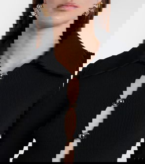 Beaded Ribbed-knit Midi Dress