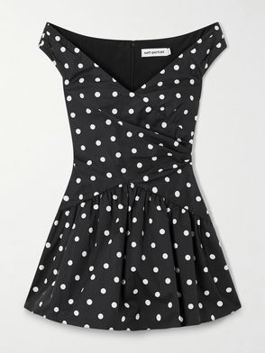 Off-The-Shoulder Polka-Dot Cotton Mini Dress