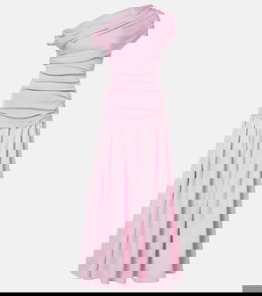 Off-The-Shoulder Draped Knitted And Cotton Midi Dress