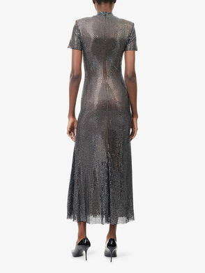 Rhinestone Short-Sleeves Stretch-Woven Midi Dress
