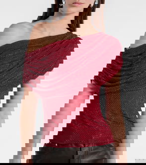 Twist-Front Cutout Crystal-Embellished Stretch-Mesh Top