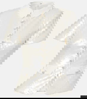 Cropped Embellished Gathered Mesh Turtleneck Top