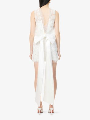Bow-Detailed Lace-Trimmed Crepe Mini Dress