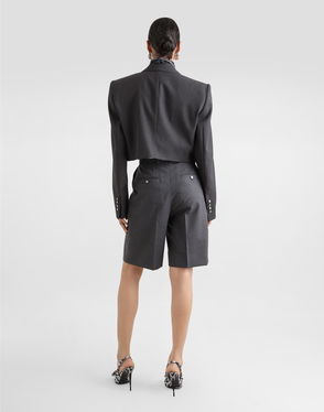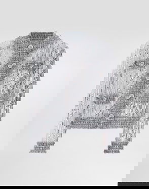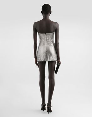 Quilted Lamé Jacquard Sack Minidress With Feathered Cuffs
