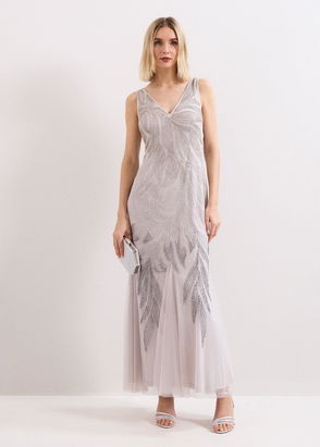 Ruffled V-Neck Metallic-Woven Maxi Dress