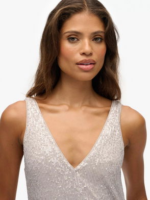 Ruffled V-Neck Metallic-Woven Maxi Dress