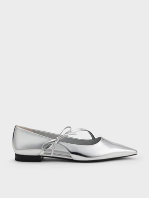 Metallic Pointed-Toe Bow-Strap Flats