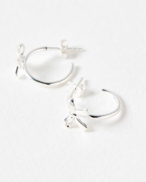 Ribbed Curve Earrings, Silver