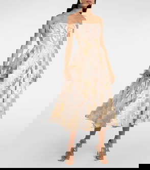 Ruffled V-Neck Metallic-Woven Maxi Dress
