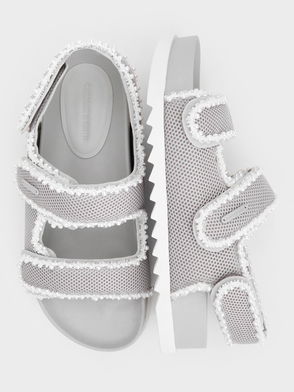 Sequin Mesh & Leather Ankle-Strap Heeled Sandals