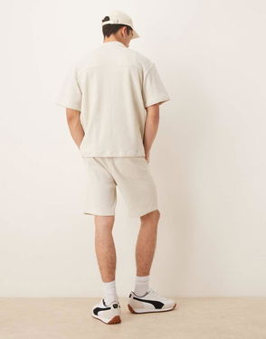Contrast Stitch Cargo Shorts In Washed Silver Beige