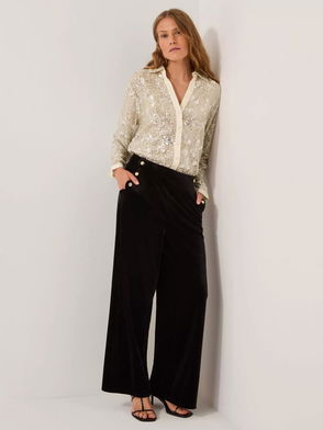 Silver Metallic Ashley Pleat Sleeve Twist Neck Top