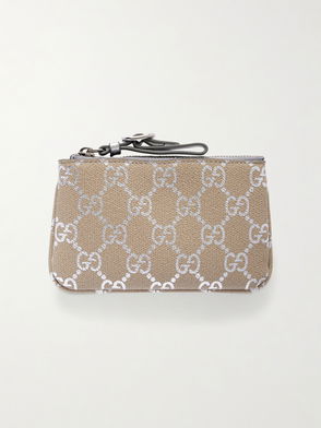 GG Emblem Small Metallic-trimmed Printed Textured-leather Wallet