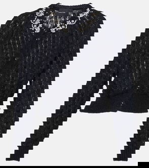 Bow-Detail Open-Knit Wool-Blend Cardigan
