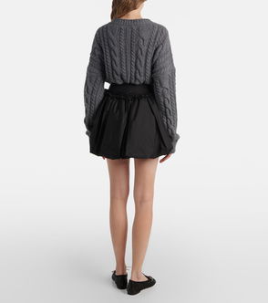Tulle-trimmed High-rise Tweed Midi Skirt
