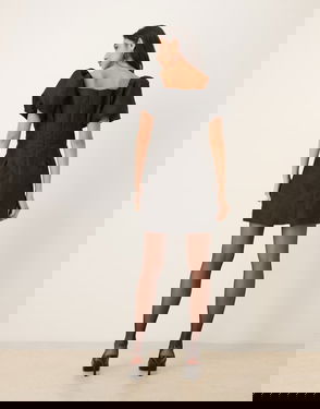 Cocktail Puff Sleeve Contrast Bow Detail Mini Dress In Black And White