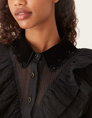 Kelly Sheer Ruffle Button Through Shirt In Black