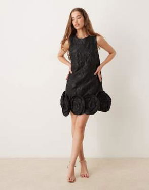 Dream Rosette Hem Jacquard Mini Dress In Black