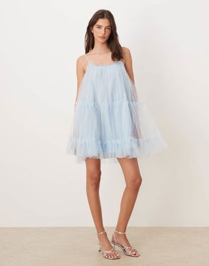 Tulle Cami Babydoll Mini Dress In Baby Blue