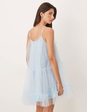 Tulle Cami Babydoll Mini Dress In Baby Blue