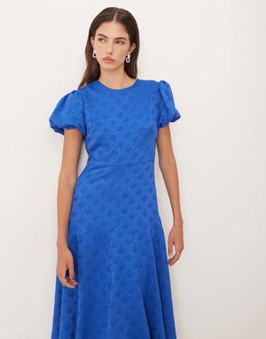 Dream Blooming Jacquard Mini Dress In Cornflower Blue