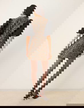 Cherie Jacquard Puff Sleeve Mini Dress In Leopard Print