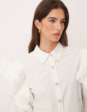 Afterglow Oversized Shoulder Ruffle Shirt In White