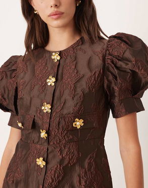 Anemone Jacquard Mini Dress In Chocolate Brown