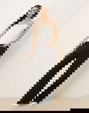 Contrast Bow Broderie Wide Leg Trousers Co-Ord