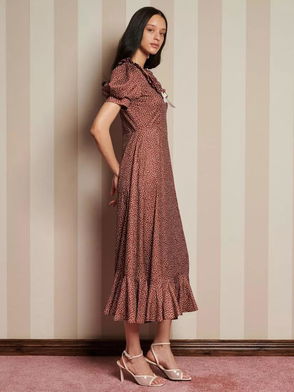 Dream Antique Textured Jacquard Midi Dress In Brown