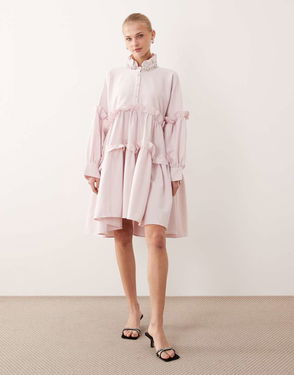 Dream Rising Sun Cotton Smock Embellished Collar Mini Dress In Pink