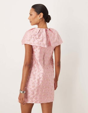 Cameo Floral Jacquard Bow Cape Sleeve Mini Dress In Pink
