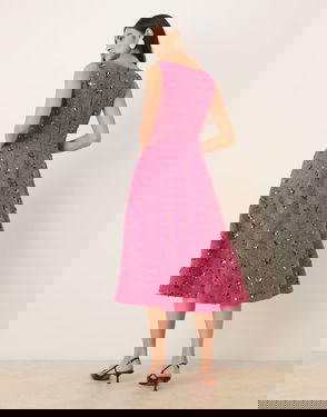 Dream Hollywood Embellished Tweed Scoop Neck Midi Dress In Pink